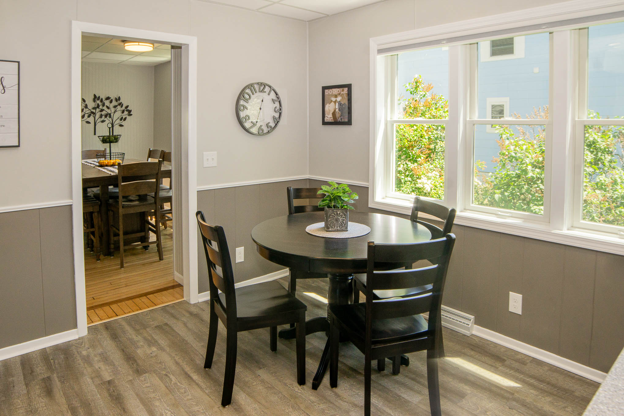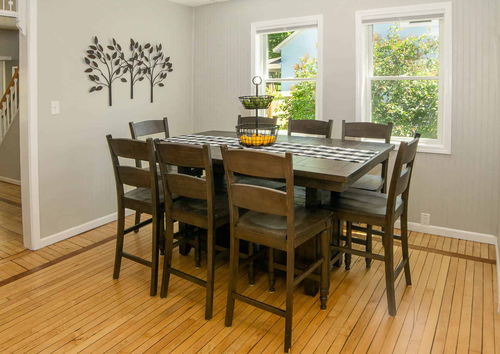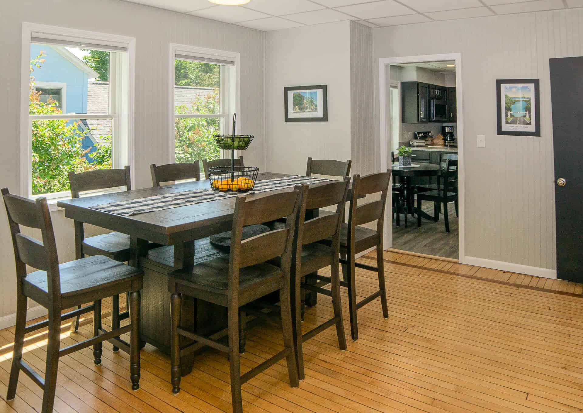 Dining Room: Gather around the table with seating for eight. Whether it is for meals, or lively conversations, this space accommodates both.