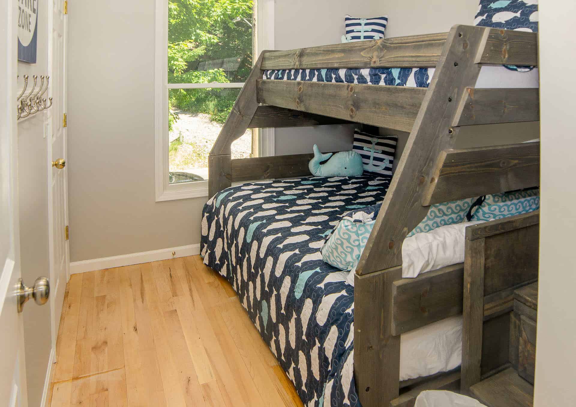 - Top bunk: Twin bed (Note: railing is not extendable in height; not recommended for young guests or active sleepers)
