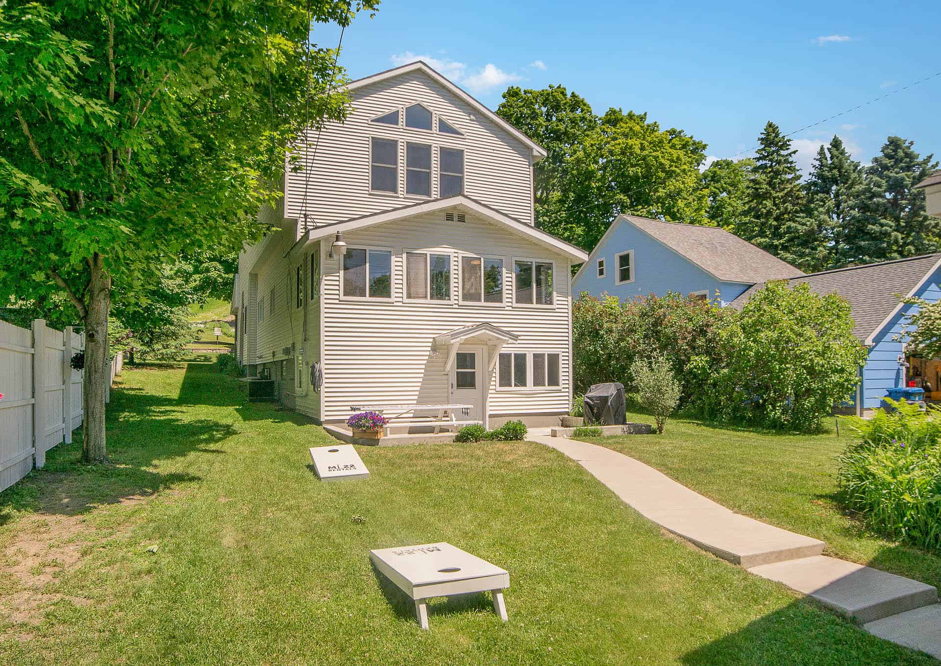 - For ease in loading /unloading you may prefer to park on Leelanau Avenue in front of the house if space permits. The front of the house is also easily identifiable by our M22 Rental sign located in the front yard. The house may be accessed directly from the front or rear entry doors.