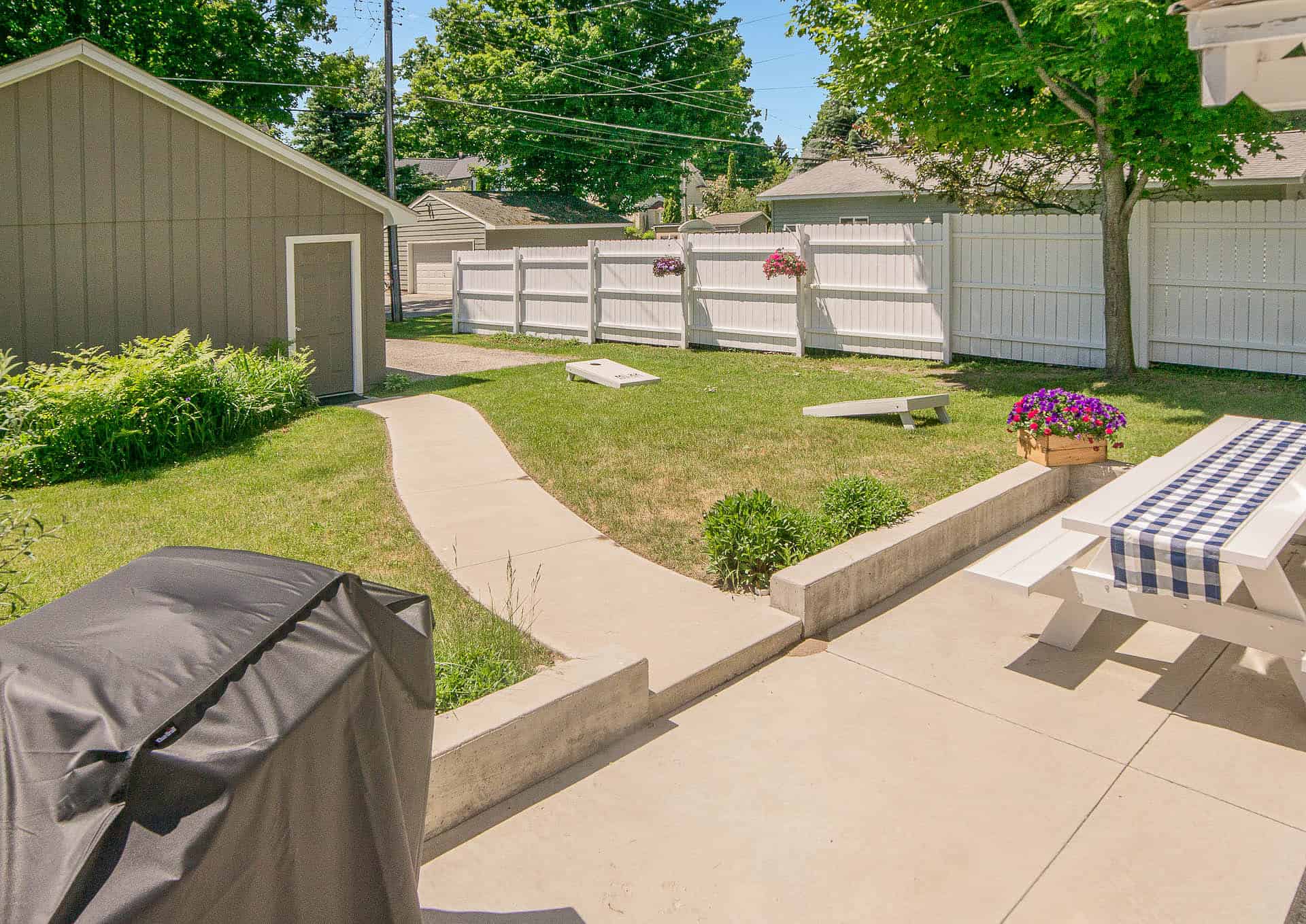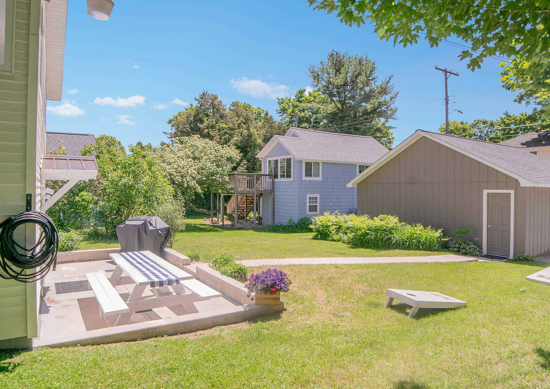Backyard Games: The backyard offers plenty of space for outdoor enjoyment. Get ready for friendly competition! Game On! Cornhole or Yard Yahtzee – you determine the Champions!